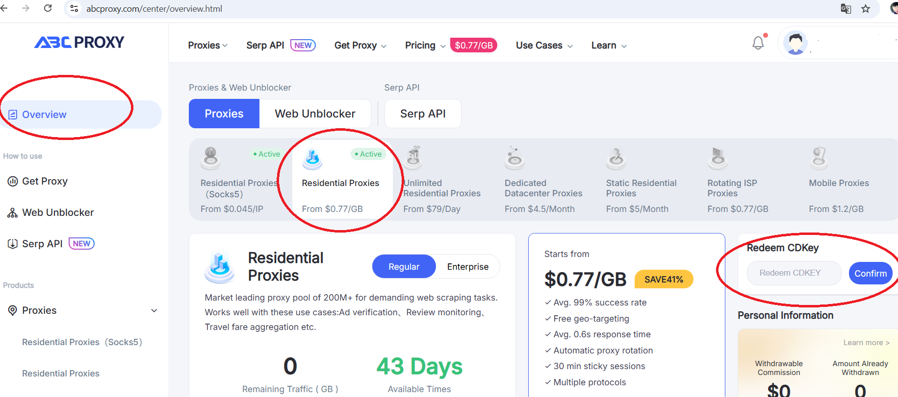 Bước 2: Vào https://www.abcproxy.com/center/overview.html