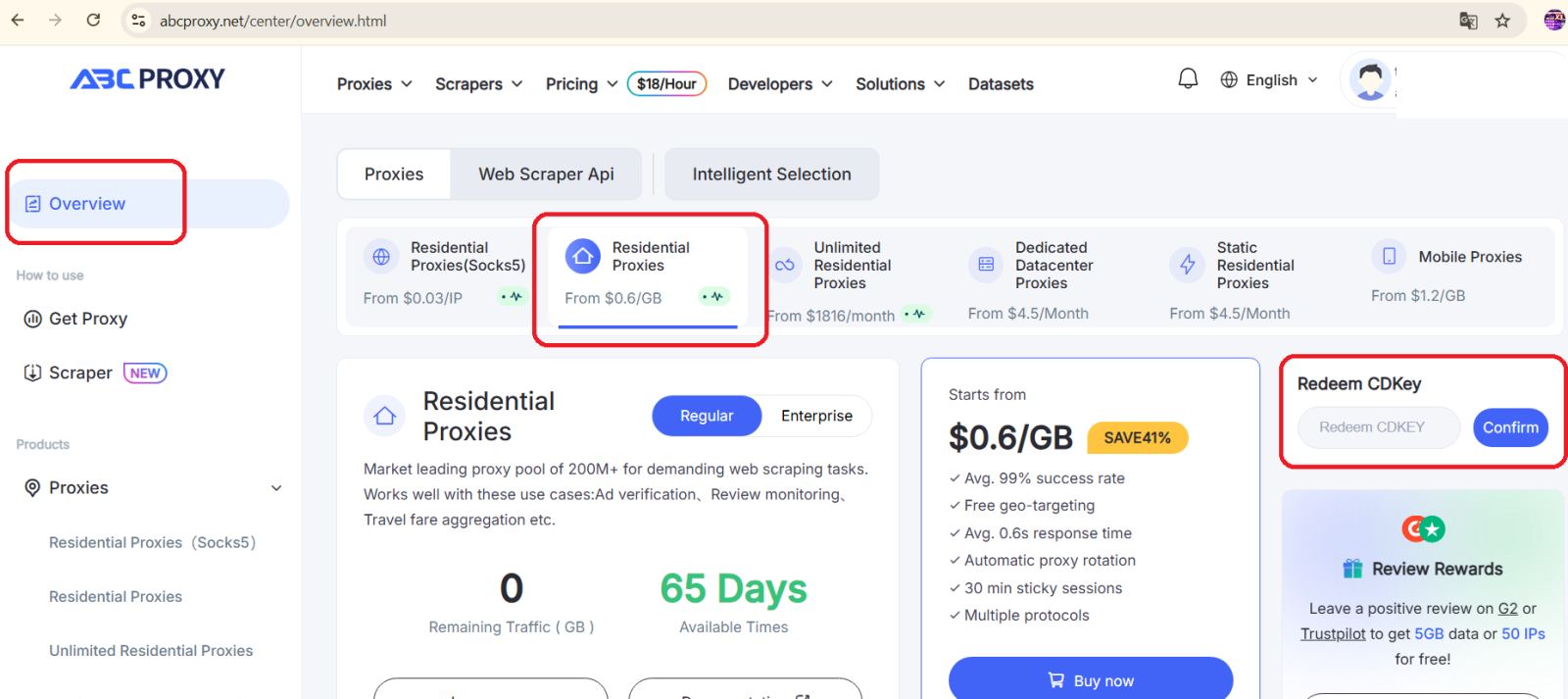 Bước 2: Vào https://www.abcproxy.net/center/overview.html