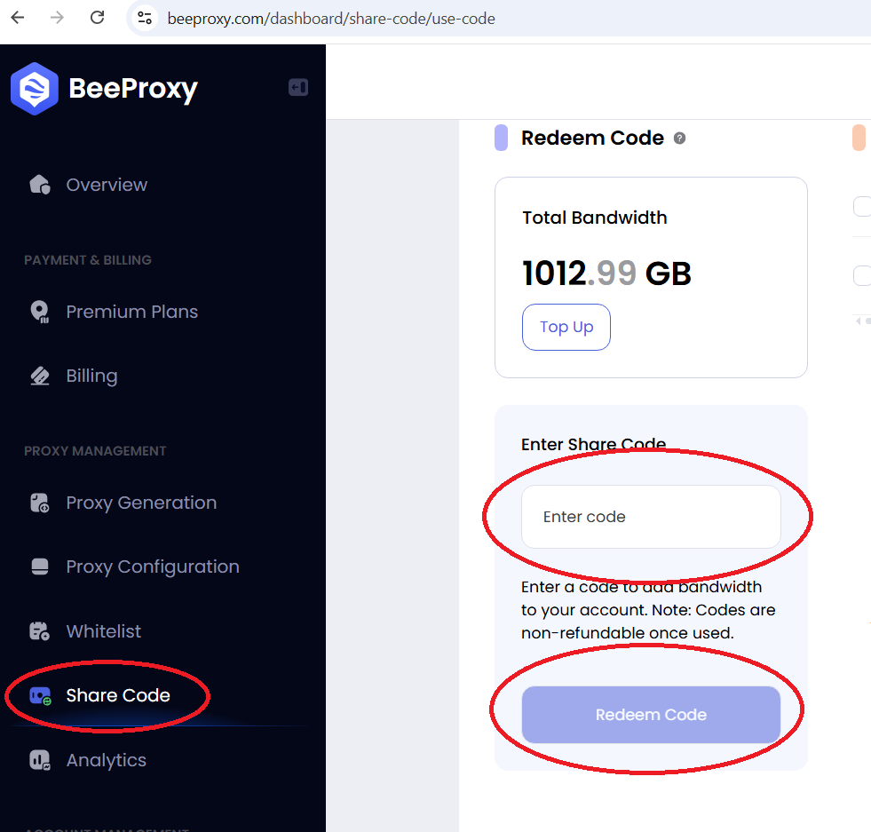 Bước 2: Vào https://beeproxy.com/dashboard/share-code