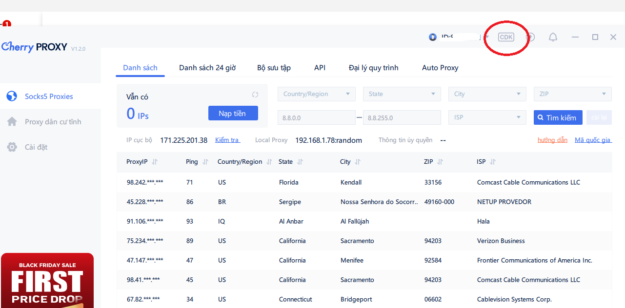 Socks5 Proxies (Business) -> Nạp CDKey theo IP