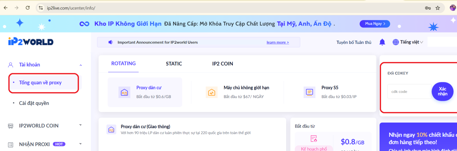 Khi Mua Ip2Live, khách hàng sẽ được cung cấp CDkey (Mã nạp) có số lượng GB tương ứng, thời hạn sử dụng lên đến 90 ngày.
