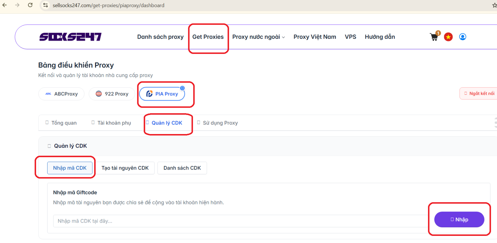 Bước 2: Vào https://sellsocks247.com/get-proxies/piaproxy/dashboard