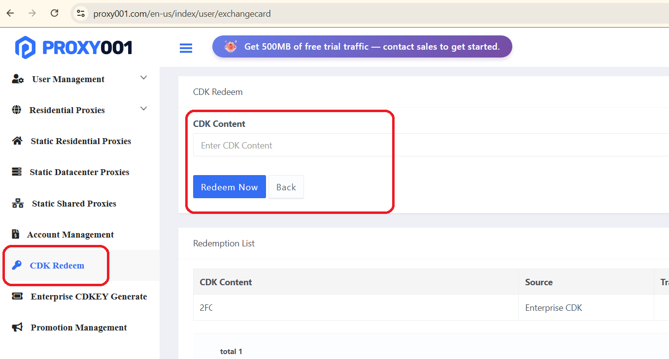 Bước 2: Vào https://proxy001.com/en-us/index/user/exchangecard