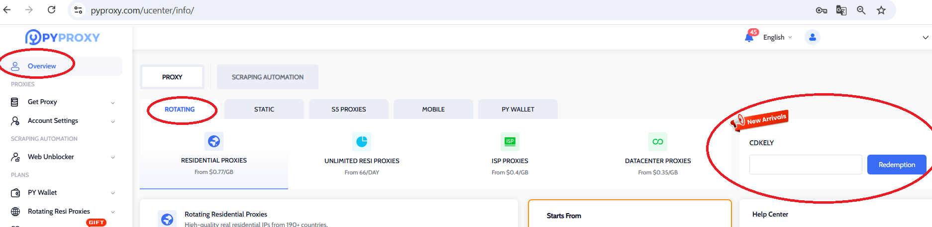 Bước 2: Vào https://www.pyproxy.com/ucenter/info/