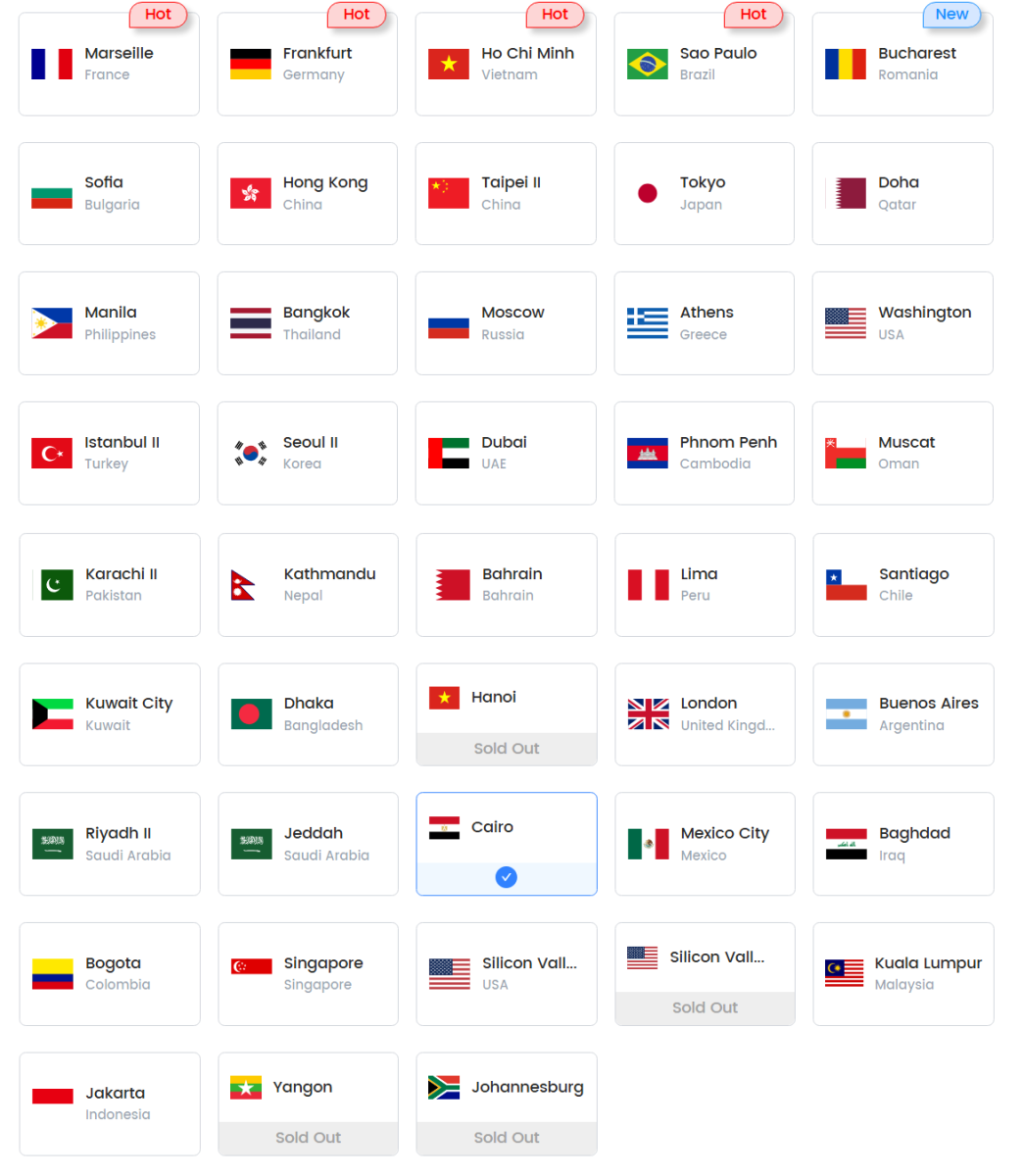 Hiện tại Sellsocks247 đang cung cấp VPS và Proxy chính hãng , giá rẻ với các quốc gia sau: